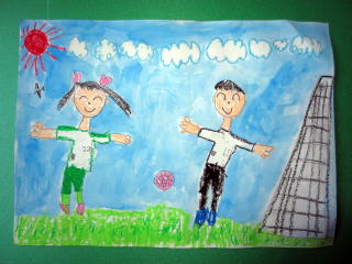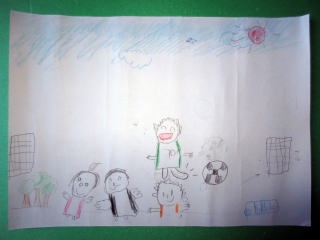 ぼくは、さきちにはいってみんなでサッカーをやってたのしいです。みんなでしあいをやってたのしいです。みんなはじょうずだけど、ぼくはへたくそです。これからはがんばってじょうずになりたいです。