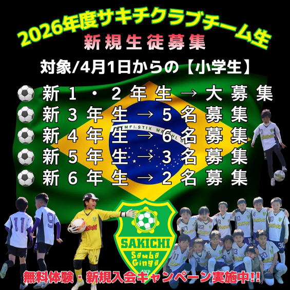 只今SAKICHIでは【クラブチーム生&スクール生】を募集しております。