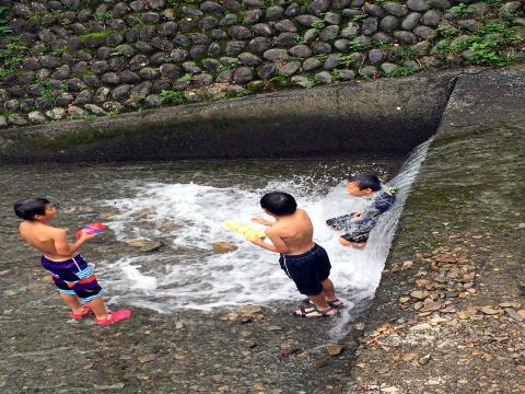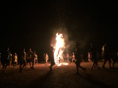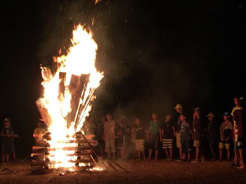 1日目は、川遊び・ボール遊び・スイカ割り・BBQ・キャンプファイヤー・花火・お化け屋敷