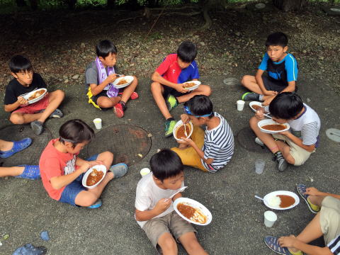 2日目は、飯盒炊飯・川遊び・宝探し・温泉に入って帰ってきました。
