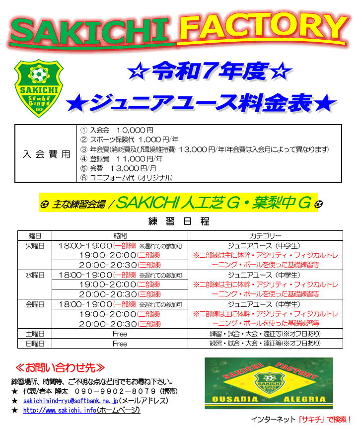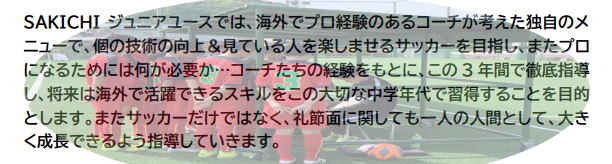 育成 | Sakichiジュニアユース | 藤枝市 (sakichifactory.com)